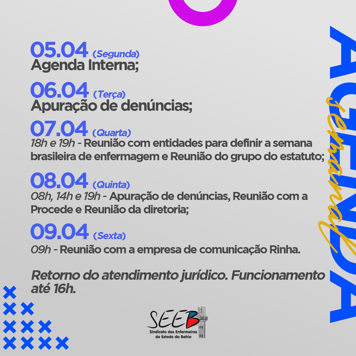 Agenda SEEB 13 a 17 de Abril