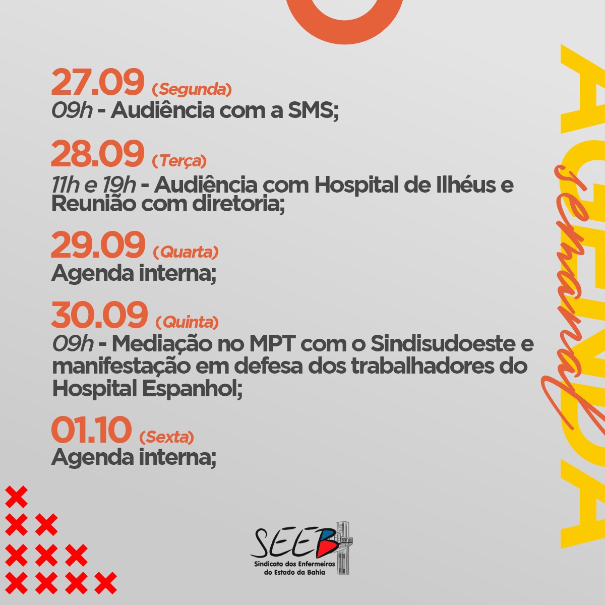 Agenda da Semana: 27 de Setembro a 01 de Outubro