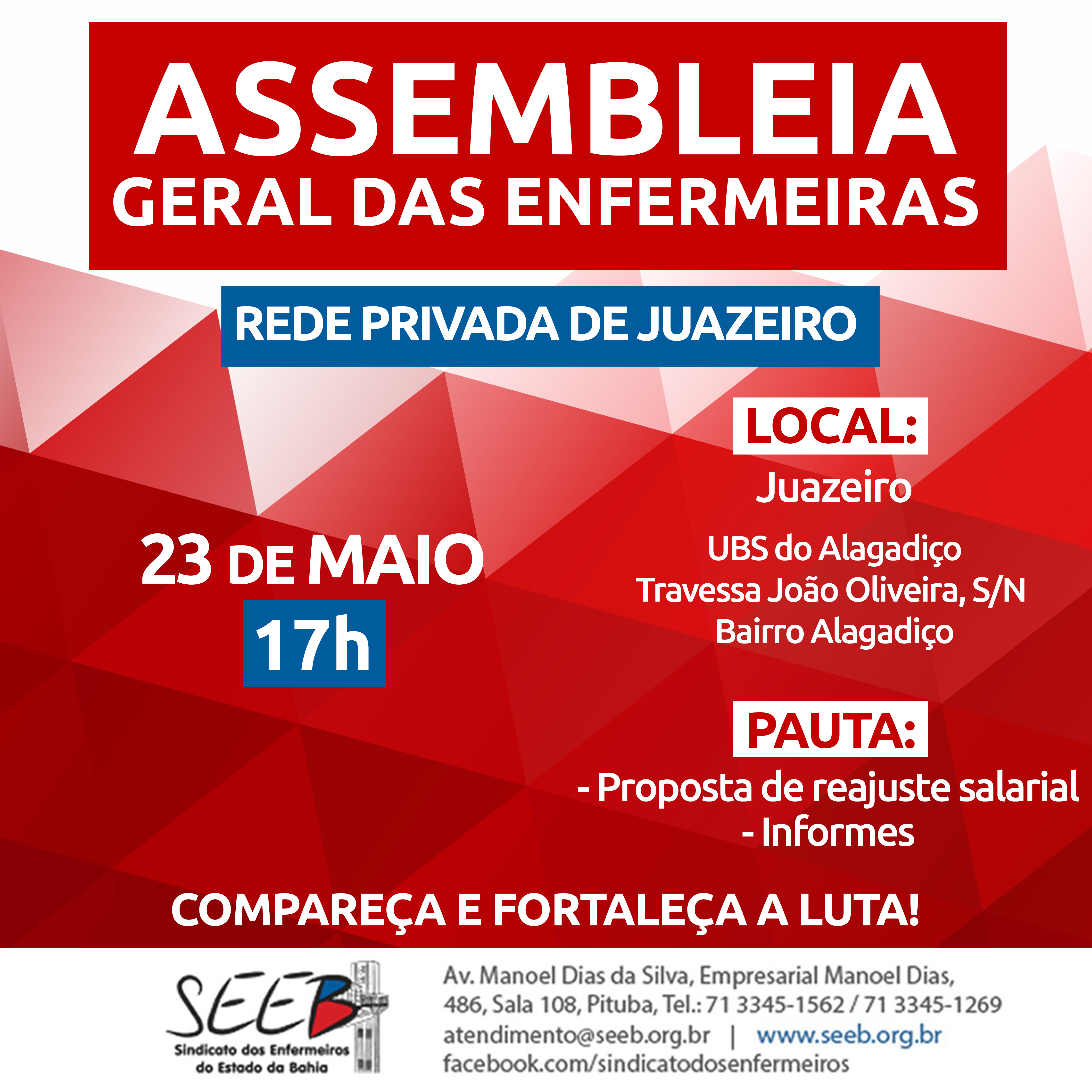 Assembleia geral das enfermeiras da rede privada de Juazeiro acontece no próximo dia 23 de maio